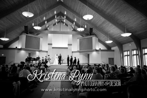 Amanda & Jeffery’s wedding had some really personal touches, such as one of her garters which was actually the one her mom wore down the aisle. I think my favorite detail images of the day were of her dress. The rich wood tones of the sanctuary provided some nice contrast with her white dress (and the lighting was amazing!). I also loved the girls’ bouquets which had some fun design elements worked into them.